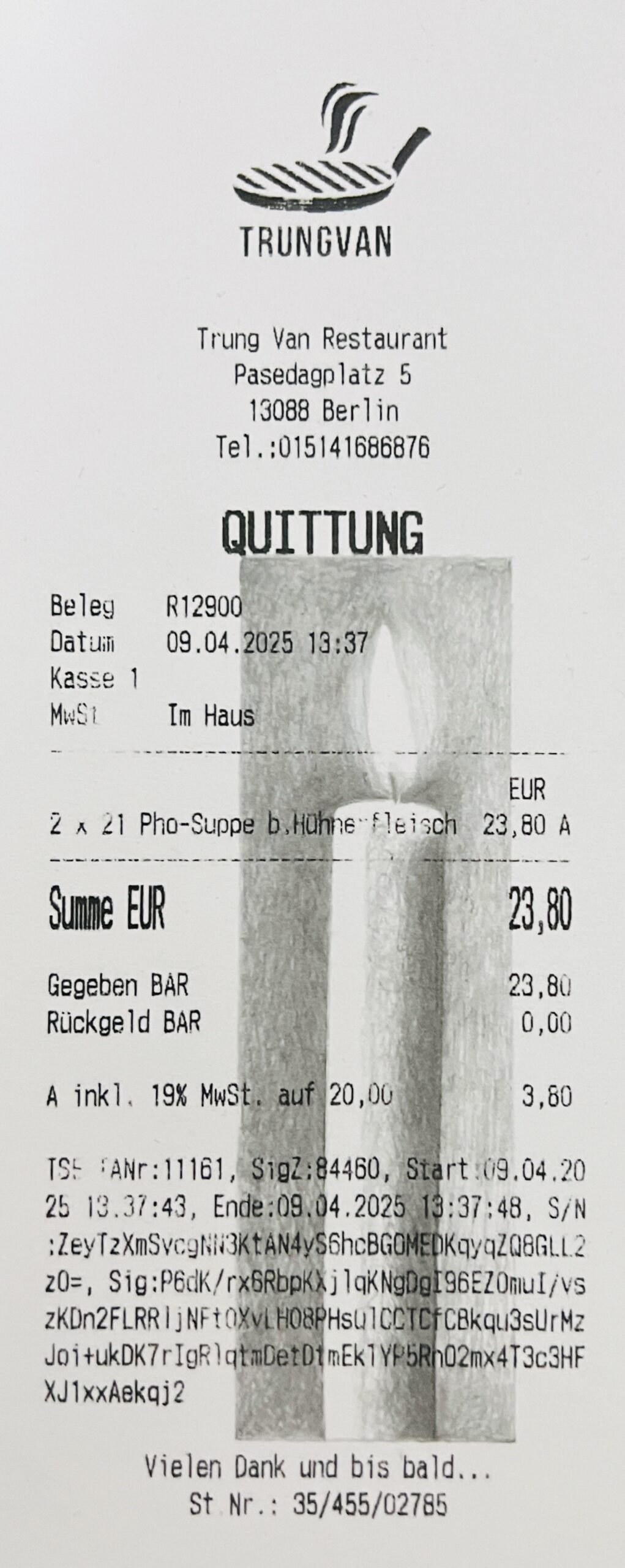 11 Aug UNTITLED (BUREN). 2025. UNIQUE RECEIPT DRAWING BY MONK WITH HANDWRITTEN NOTE.