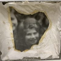 UNTITLED. 1968. UNIQUE BISCUIT BOX WITH CAGES OF HAIR, BLOODY PLASTER AND "BOULE" AS WELL AS SIGNED PHOTOGRAPH.