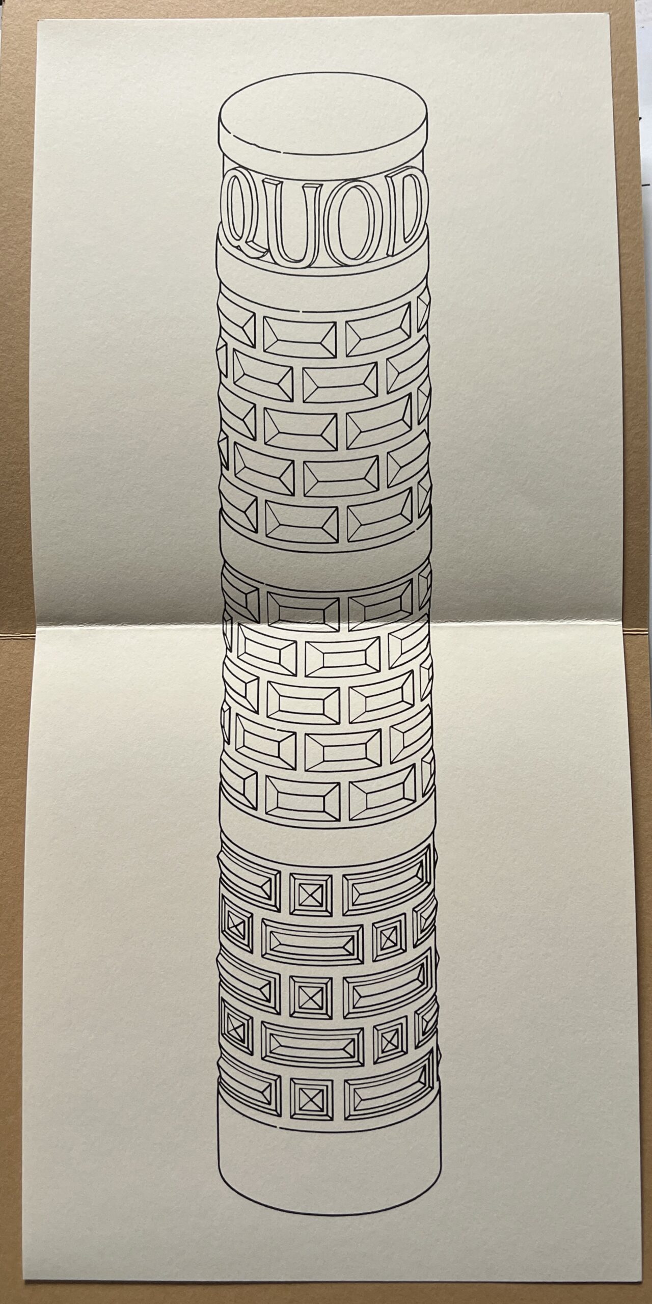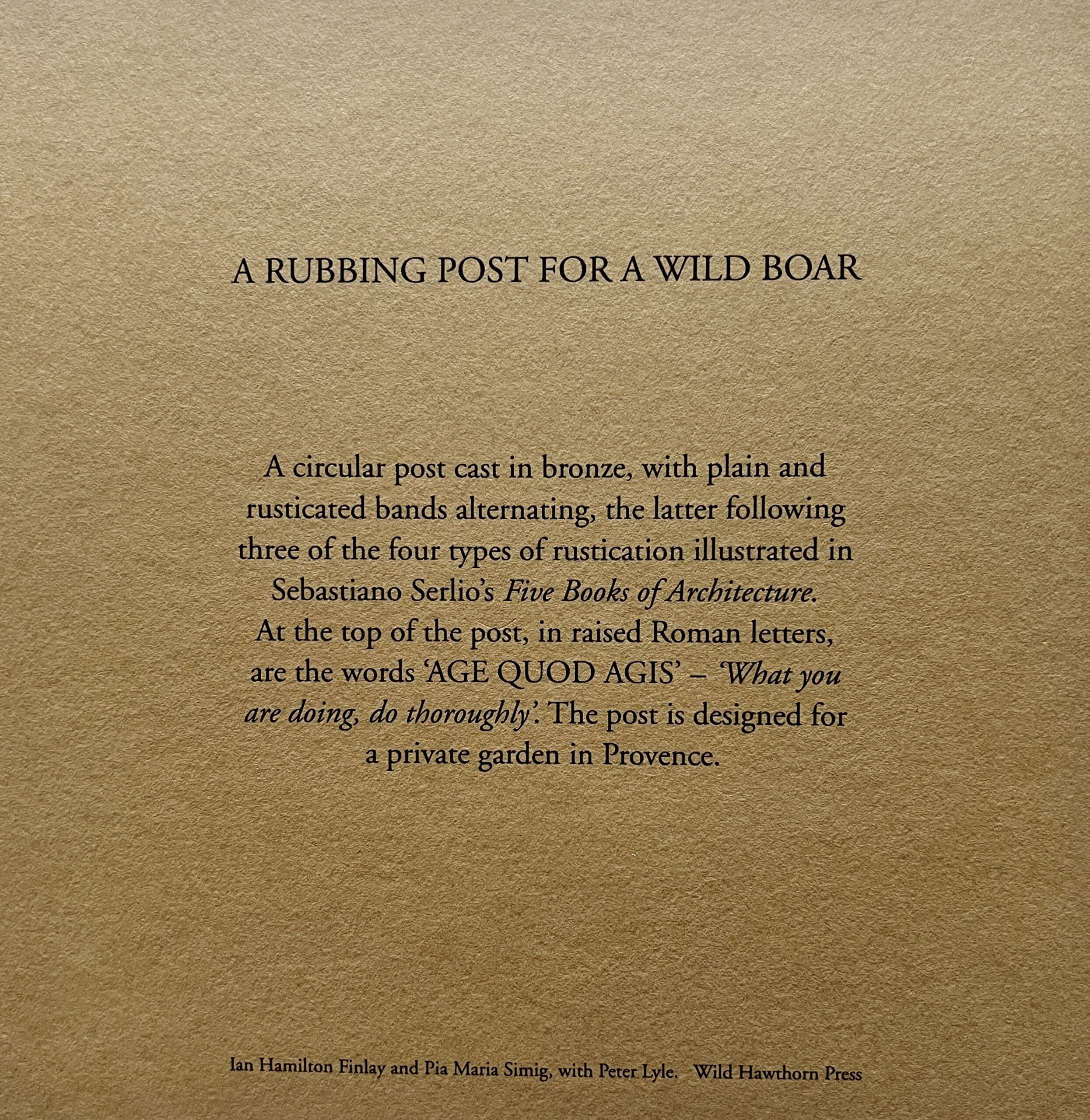 101 x 8cm, 32pp plus end papers and green embossed boards. A proposal offered to Laumeier Sculpture Park in Saint Louis, the book has four paintings by Grahame Jones of leaf-like shapes (cast shades) - the elm, the pine, the plane and the lime. The choice of shades (shapes) comes from a quote by Vigil (a plane-tree was a common garden element in those days as were the three others mentioned).