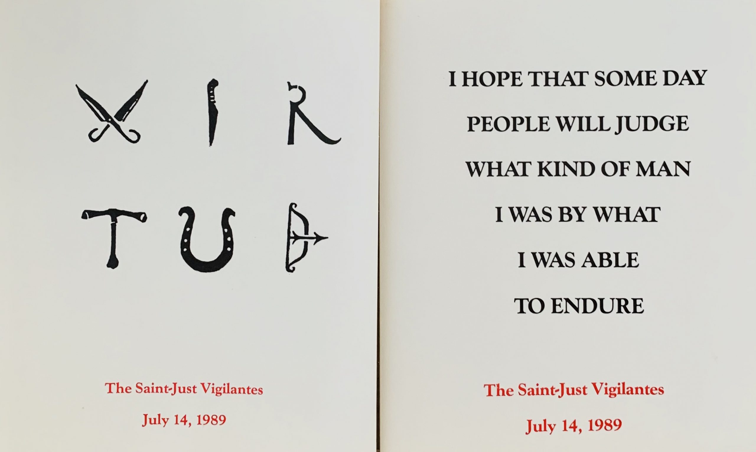 20 Apr EIGHT STICKERS FOR SAINT-JUST VIGILANTES. 1989. Posted at 18:03h in Object + Paper Multiples by paul robertson
