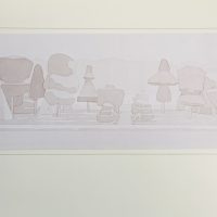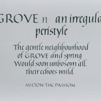 Wikipedia explains that "Strawberry Hill House—often called simply Strawberry Hill—is the Gothic Revival villa that was built in Twickenham, London by Horace Walpole from 1749 onward. It is the type example of the "Strawberry Hill Gothic" style of architecture, and it prefigured the nineteenth-century Gothic Revival." Walpole was also the author of ‘The Castle of Otranto’, the world’s first Gothic novel. Finlay's work might be seen as a word picture of Gothic landscape.
