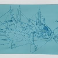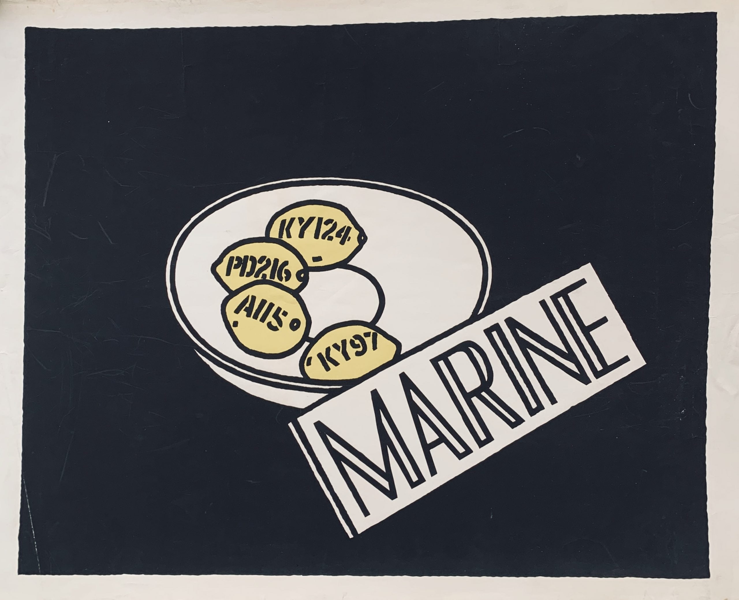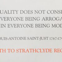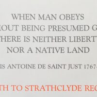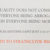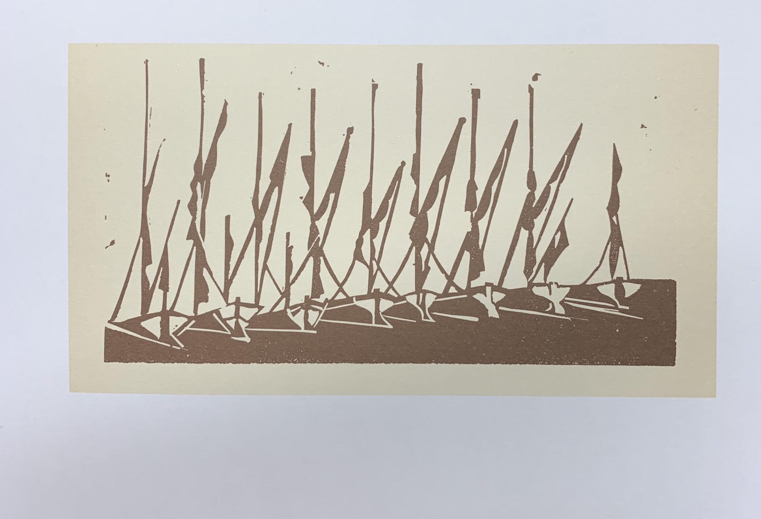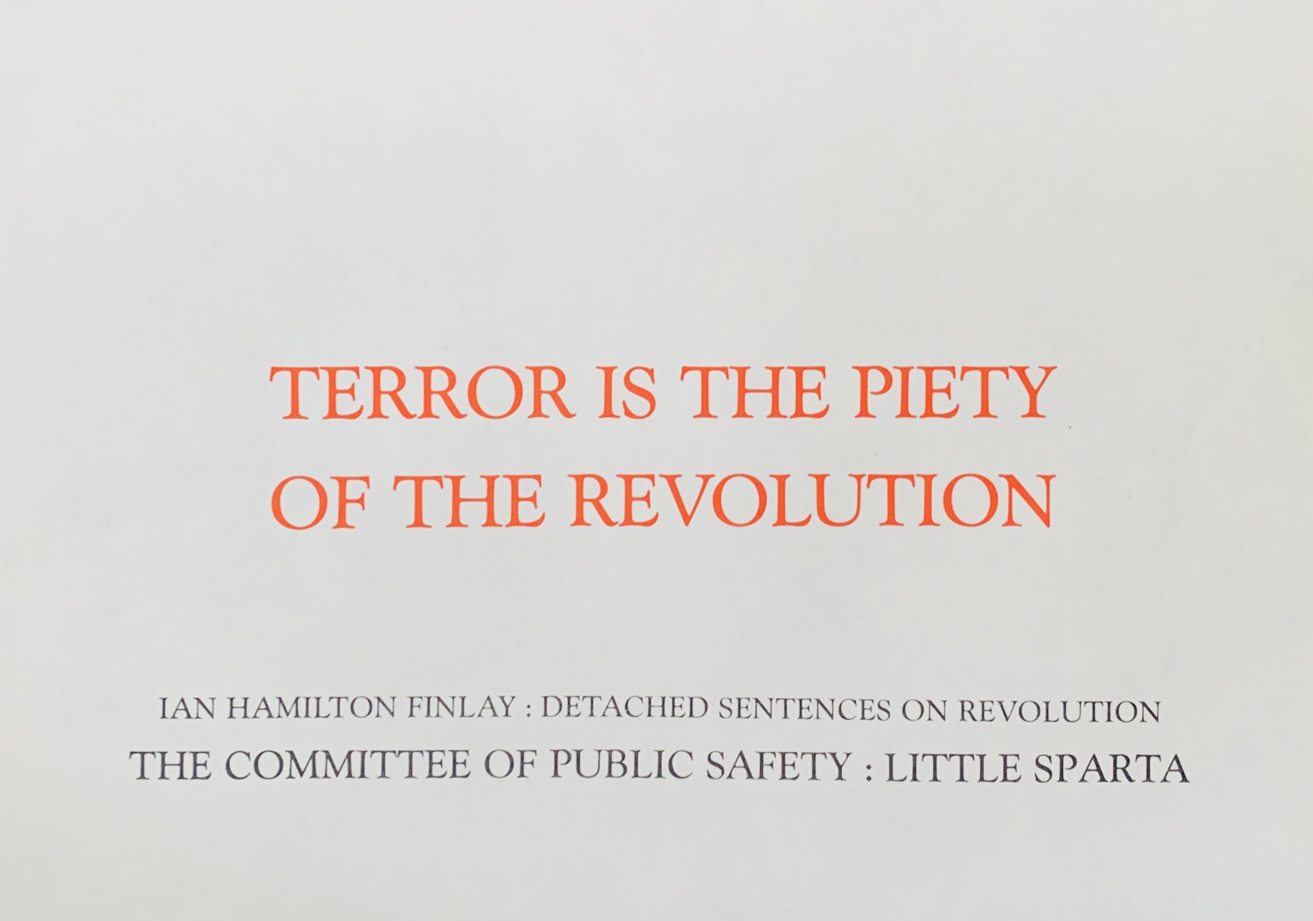 5) Strawberry Hill "Precipices, Mountains.," by Ian Hamilton Finlay, edition limited to 140 copies. 35.5 x 17cm, 1pp. The print is a letterpress on deckled paper - which quotes Horace Walpole on his intent to create a "little Gothic Castle at Strawberry Hill". Below that quotation is a further quotation from Walpole (the son of the then British Prime Minister) describing the environment on Strawberry Hill namely "Precipices, mountains, torrents, wolves, rumblings" and the below that a final pairing of "Wild cats, Corsairs..." which are the names of carrier-borne aircraft from the Second World War. Finlay seems to be comparing the wilds of Walpoles imaginings to the fires of the weapons of an aircraft carrier. A carrier after all is a wild hill on the sea.