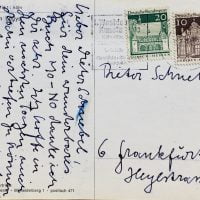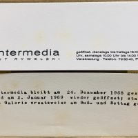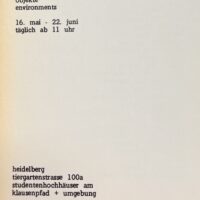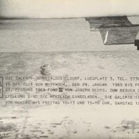 20.9 x 10.6cm, 4pp. Printed only on the inside with exterior of card blank. Beuy's first ever exhibition invitation with a b/w reproduction of a linocut from 1959 and details of the Van der Grinten collection of Beuys works that were being exhibited in the family's house.