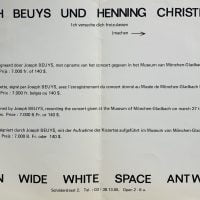 One wrap around image of Beuys during the performance in b/w on the outside, inside edition details. VG+. Scarce. This announcement leaflet is not found in the Wide White Space catalogue raisonne.