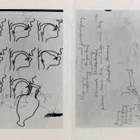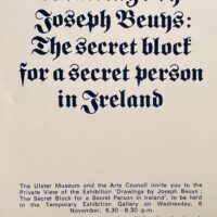 20. 8 x 14.7cm, 4pp announcement card for the title book displaying Beuys work from the period before he was able to exhibit. Later many of these were collated into the Secret Block for a Secret Person in Ireland. This , as noted on the card, was the first published book on Beuys and contains 40 reproductions of works in collotype and 17 reproductions of sketches made by the artist during the interview with Erwin