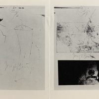 15 x 21cm, 2pp. Announcement card for a show of drawings by Beuys and Walter de Maria. A Beuys drawing on the front in b/w, verso gallery details. VG+.