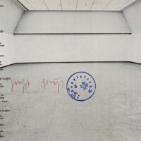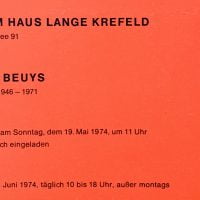 10 x 21cm, 2pp typographic design announcement card printed black on gold for a Beuys' installation. This example is signed in red felt tipped pen by Beuys on the front. Verso a list of artists shown in the museum. VG.