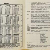 14.8 x 20.9cm, 4pp. Publicity leaflet promoting the famous gallery which is in the form of a pocket calendar / almanac announcing editions and events related to gallery artists, complete with an actual mini calendar and printed rulers.