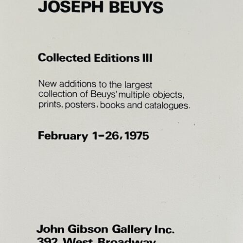 15 x 10.5cm, 2pp announcement card with a colour image of a Beuys editioned poster on the front and verso minimal gallery details. VG+.