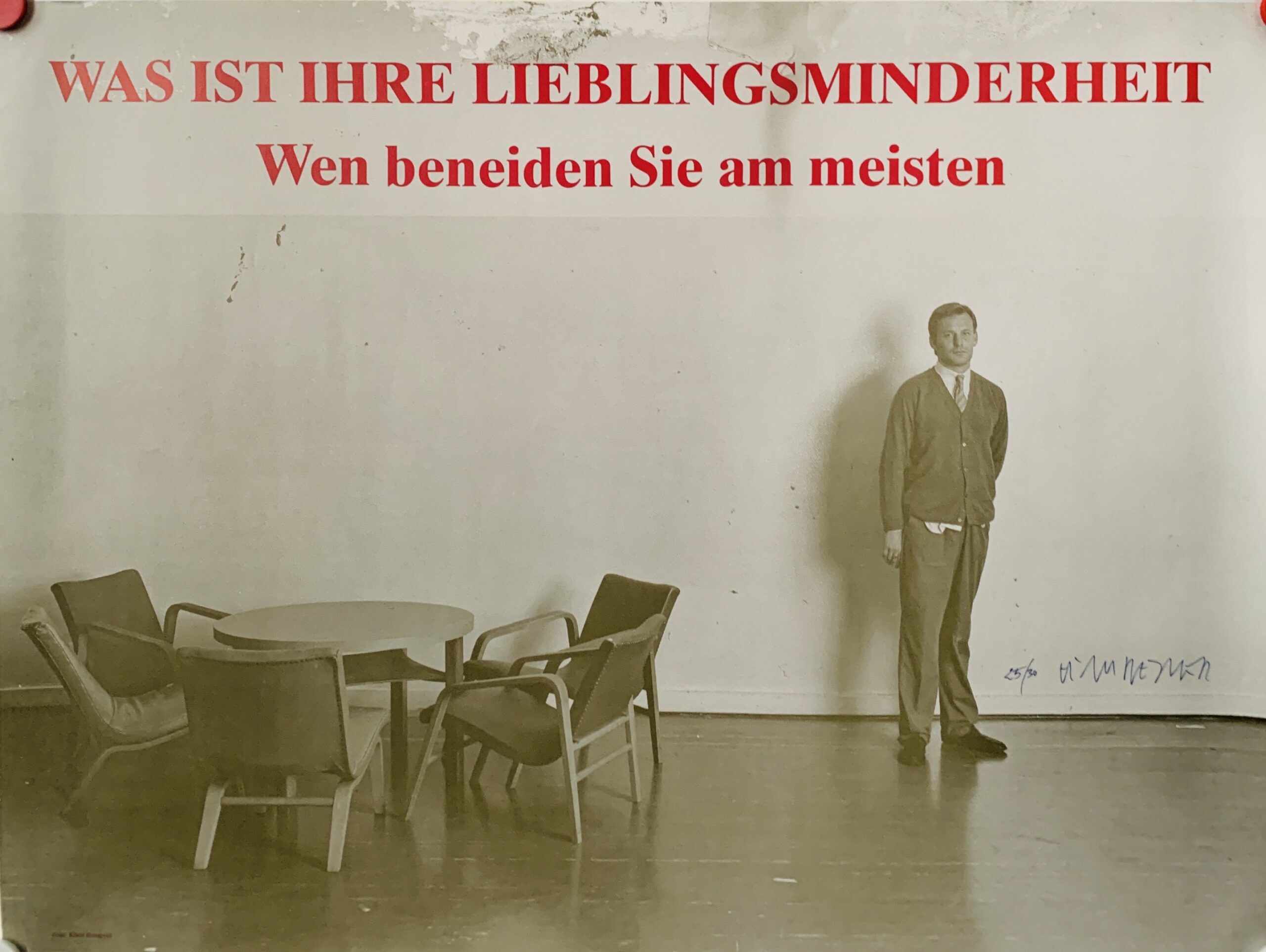Martin Kippenberger (1953 – 1997) was a prolific artist who worked in paint, sculptures, photography as well as installations. He also involved himself in the production of music (including running a punk bar/club), artist books, posters and announcement cards.