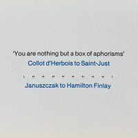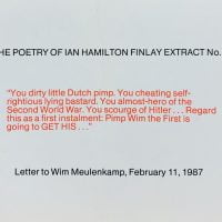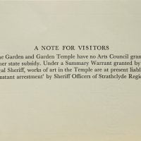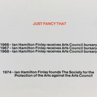 33 x 21cm, 1pp mimeograph with a text announcing the Wild Hawthorn Press based at this time in Fettes Row Edinburgh. Some quotes by other writers such as Edwin Morgan, Robert Duncan and Hugh Kenner on Finlay's poetry and mention of 'My Friend The Tree' by Lorine Niedecker (published in 1961) and 'Whistling in the Dark' by Finlay, 'Poems and Verses' by Robert Garloch and 'A Very Particular Hill' by Gael Turnbull. The Finlay and Garloch were not published by the Press unless Finlay changed the name of his own collection?