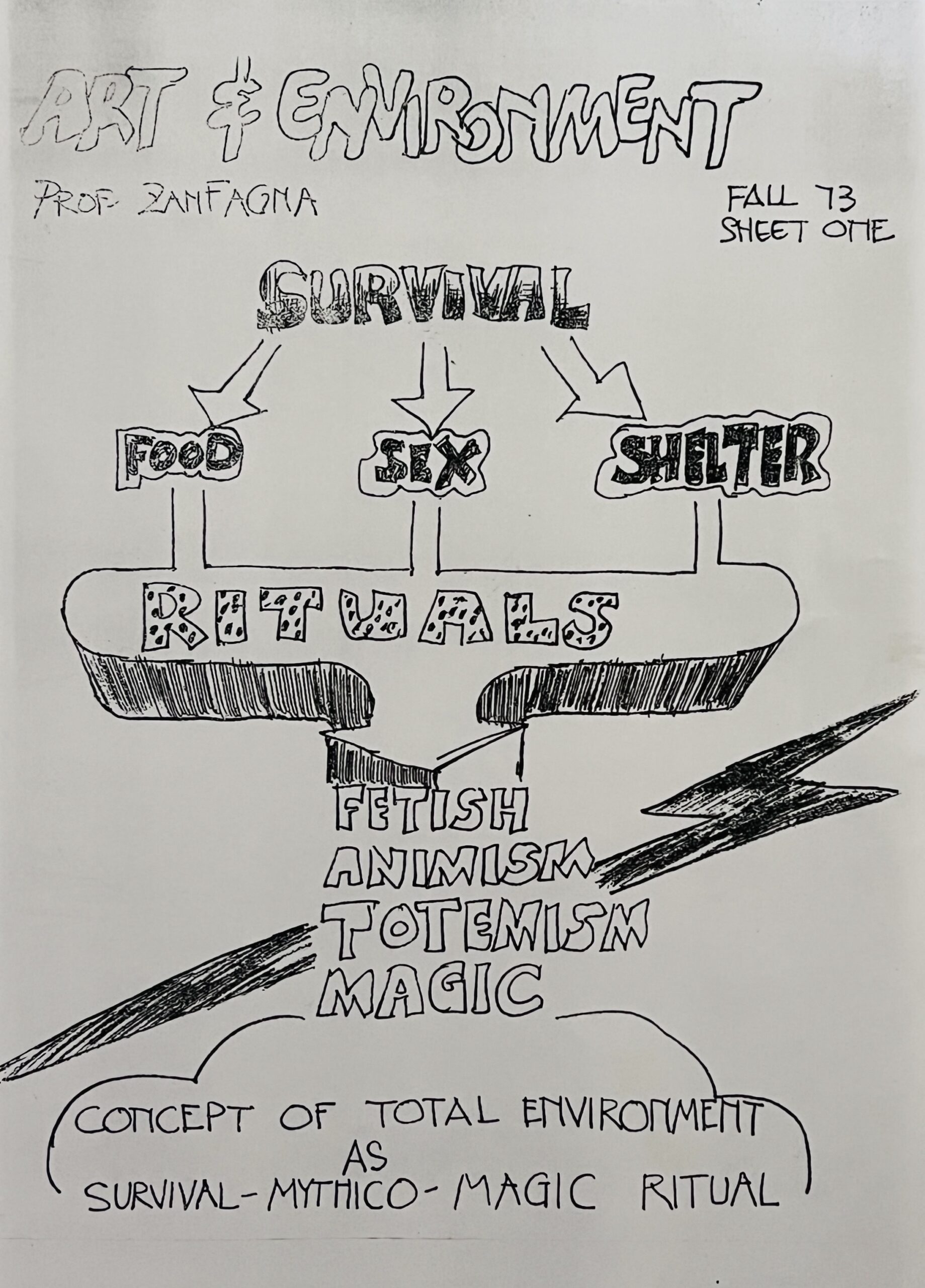 30 x 21cm, original vintage xerox with a Hansen design for an event by Professor Don Zanfagna who was an early proponent of earth and environmental art with a smidgeon of mysticism. VG+.
