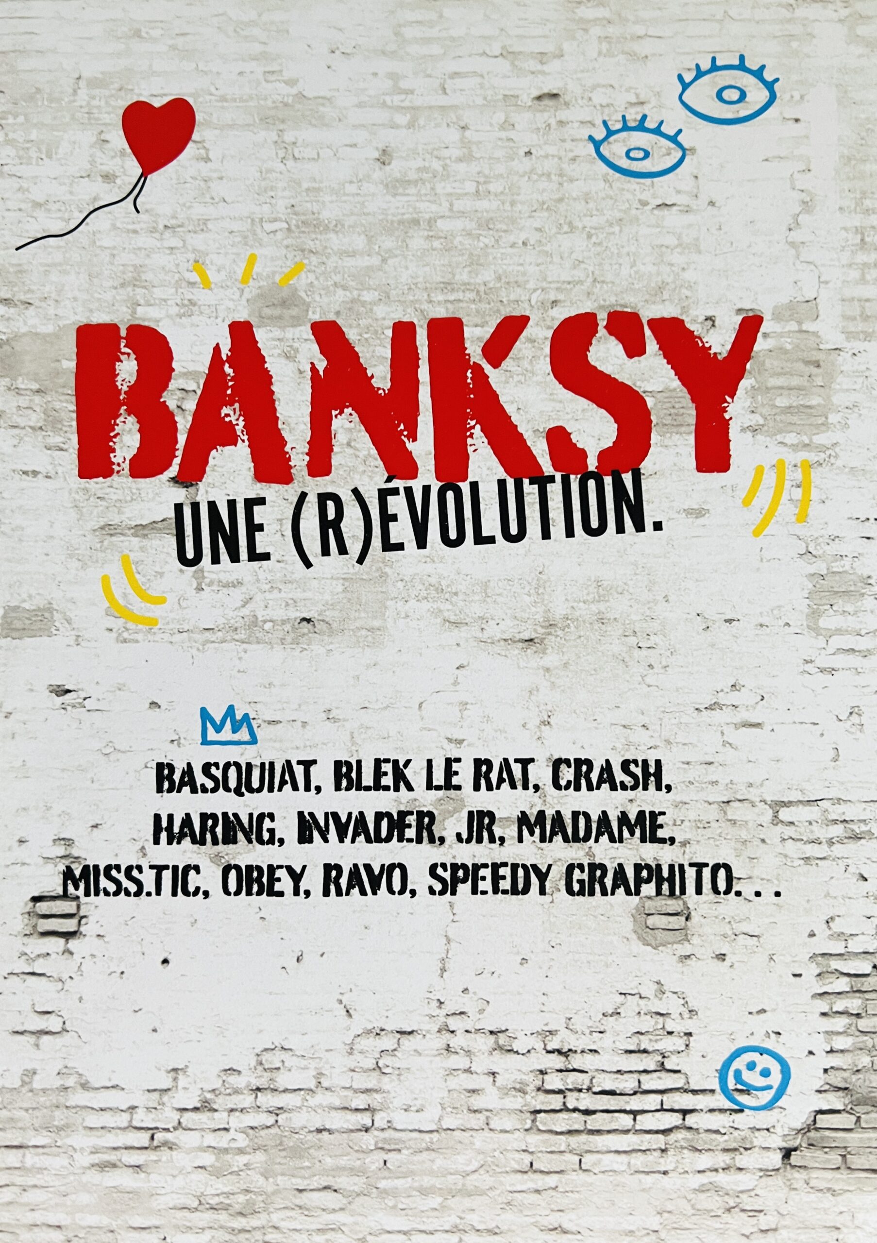 21 x 15cm, 2pp announcement card for an exhibition of street art including Banksy, Invader, Basquiat, Blek Le Rat, Obey and others. VG=.