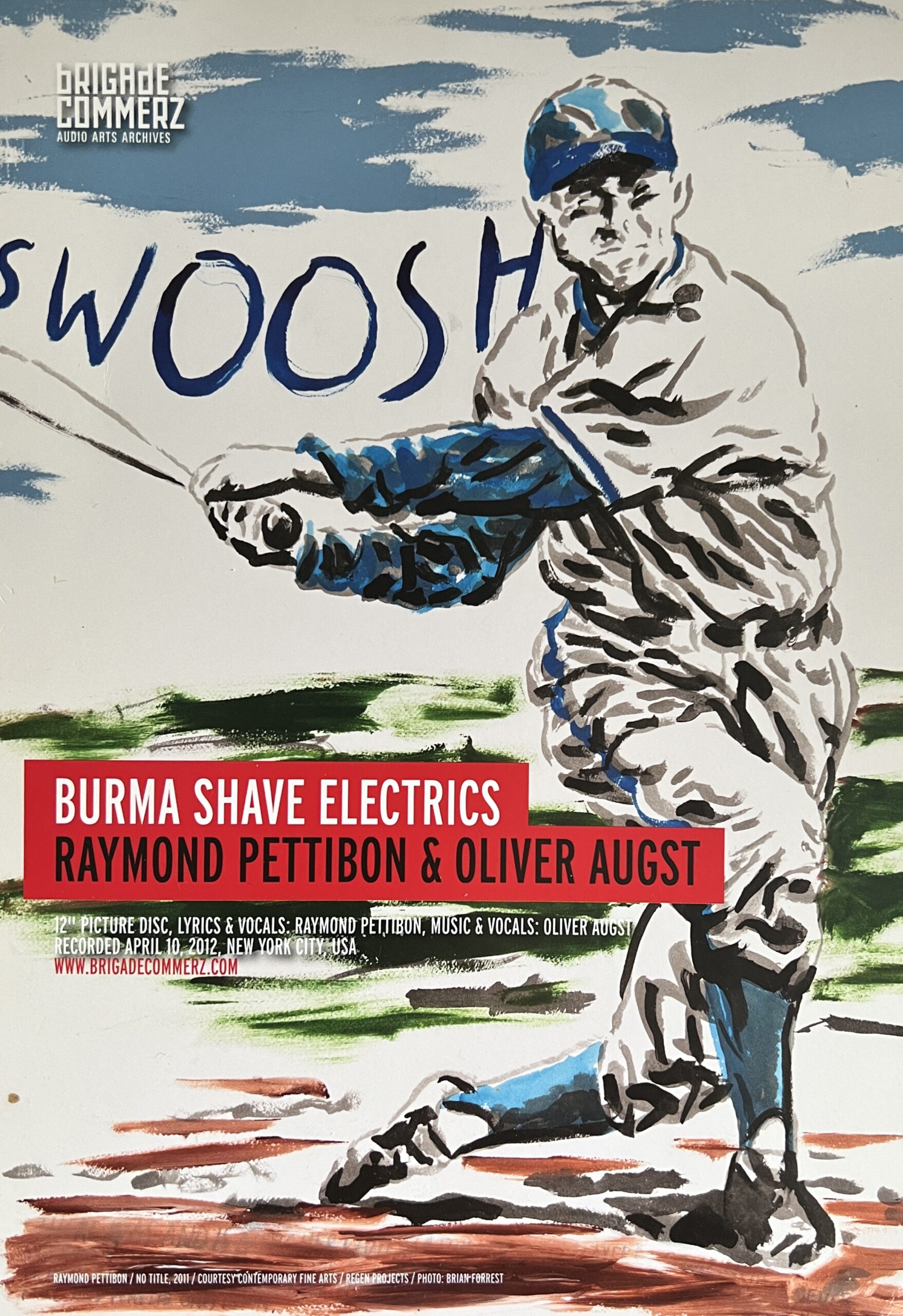 21 x 14.8cm, 1pp announcement card for the release of a 12inch picture disc by Pettibon (who wrote lyrics and sings) with Oliver Augst (also vocals). The card has a work Untitled from 2011 by Pettibon as its main illustration below floating text. Unmailed – VG+.
