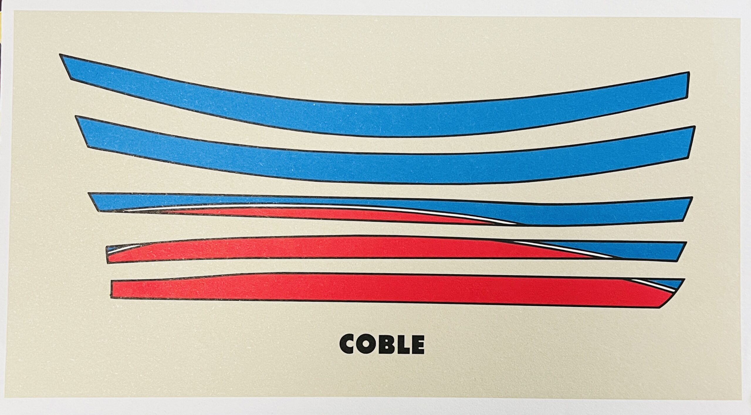 12.7 x 22.6cm, 2pp artist postcard with an abstract painting by Gary Hincks of a Coble – a flat-bottomed fishing boat. The name Coble sounds very much like cobble and both share a characteristic of being roughly made and placed next to each other to form a shape (this is how a Coble hull is made – lengths of wood overlapping – which is shown in the painting with the red and blue stripes”. VG+.