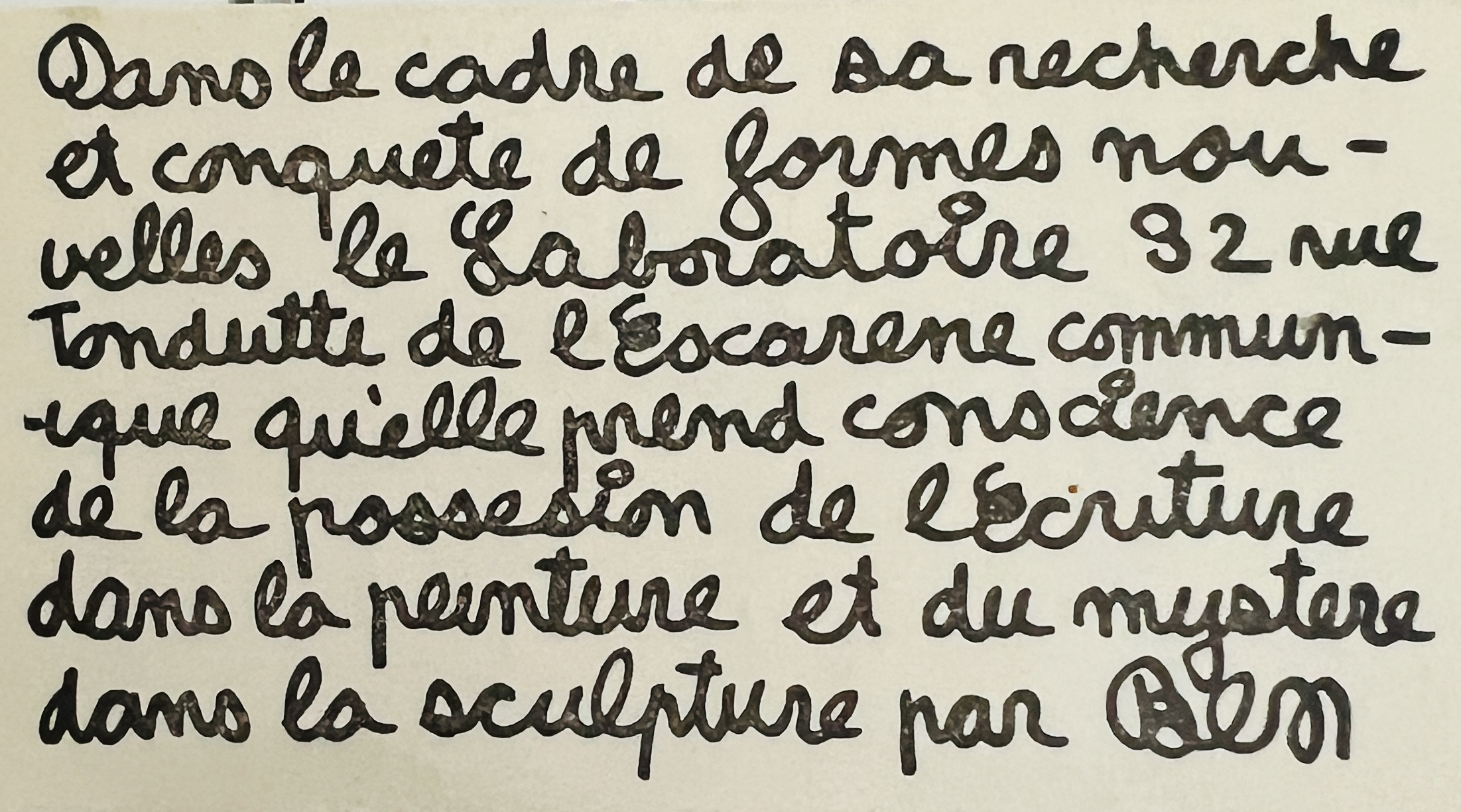 2.5 x 4cm, 1pp b/w offset card published in Ben Vautier’s facsimile hand to promote the Laboratoire (in 32 rue Tondutti de l’Escarene Nice). A very early Ben publication in VG++ condition. Rare.