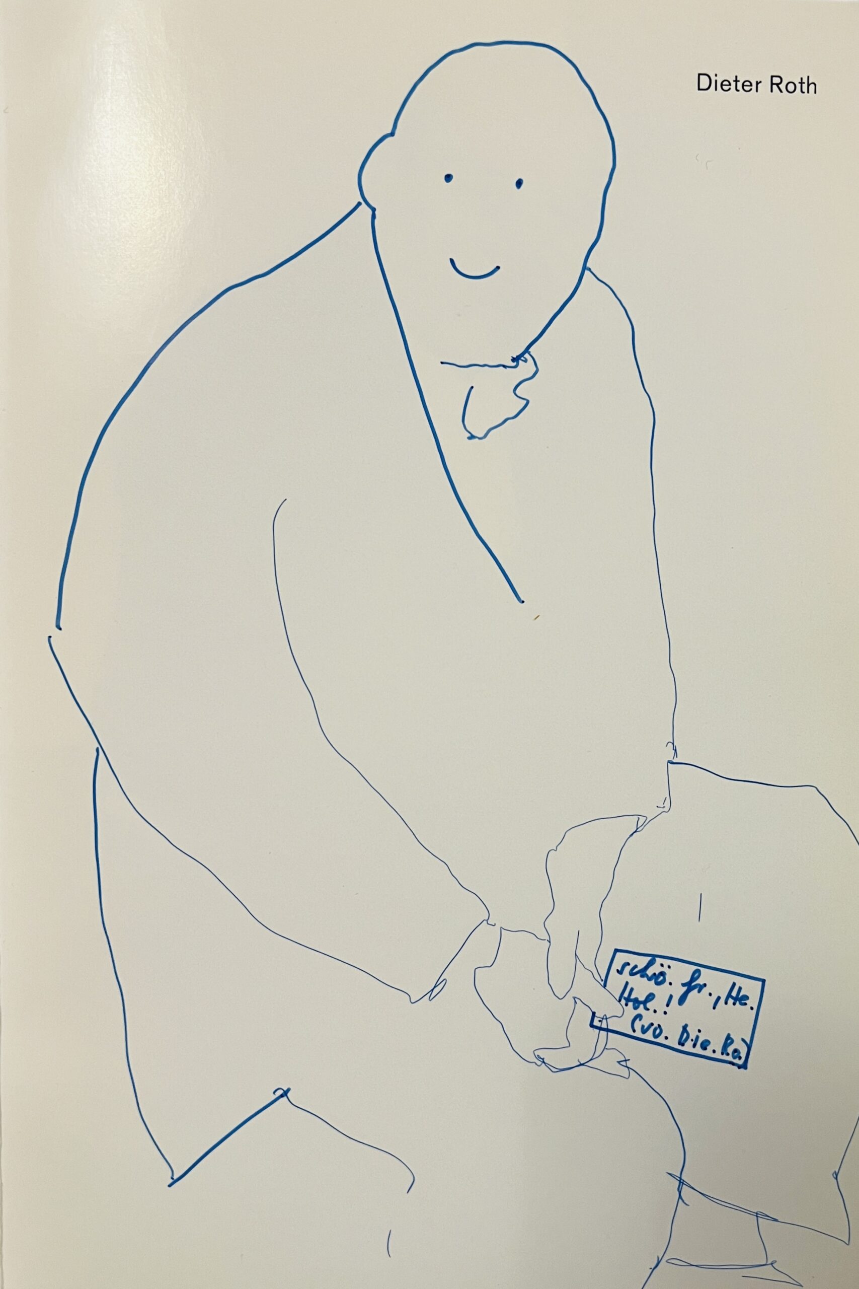 This catalogue has and original self-portrait by Roth of him sitting (created from a b/w photo-portrait of himself in the book) on the first title page along with a little hand written note based on abbreviations.