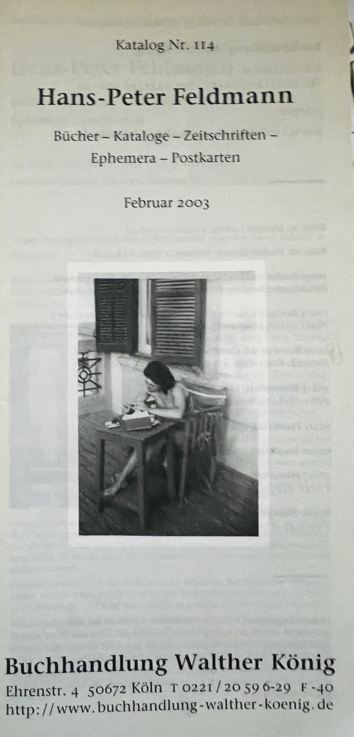 18.6 x 9cm, 20pp (self cover). Publisher’s catalogue for the items held for sale by Konig which includes all the portfolios of early Bucher that they bought from Feldmann himself and sold at incredibly higher prices (which they were entitled to do). Small images in b/w and descriptions of most books and items. Now hard to find. VG+.