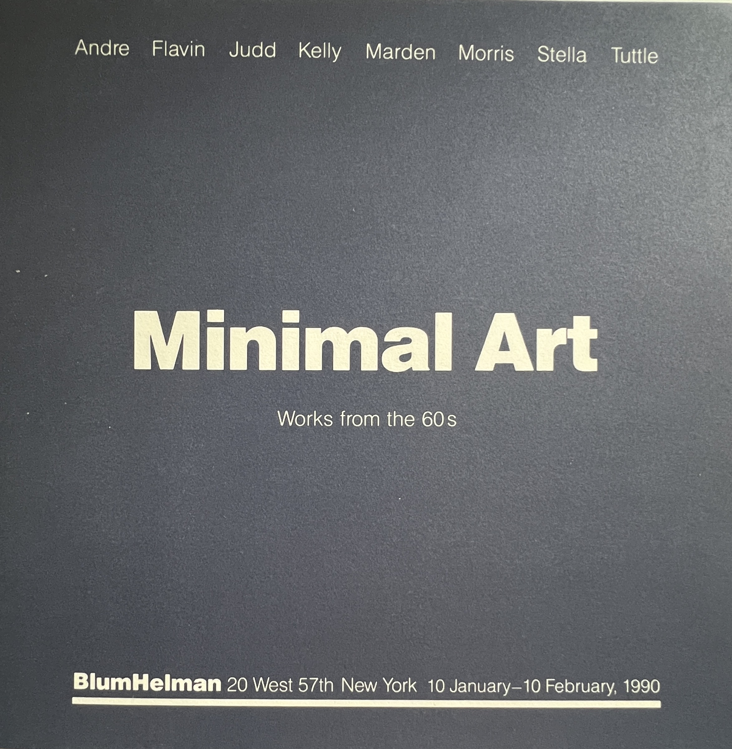 26.7 x 26.7cm, 2pp announcement card for a group show of works from the 60s by minimalist artists including Carl Andre, Dan Flavin, Donald Judd, Ellsworth Kelly, Brice Marden, Robert Morris, Frank Stella, and Richard Tuttle. VG+.