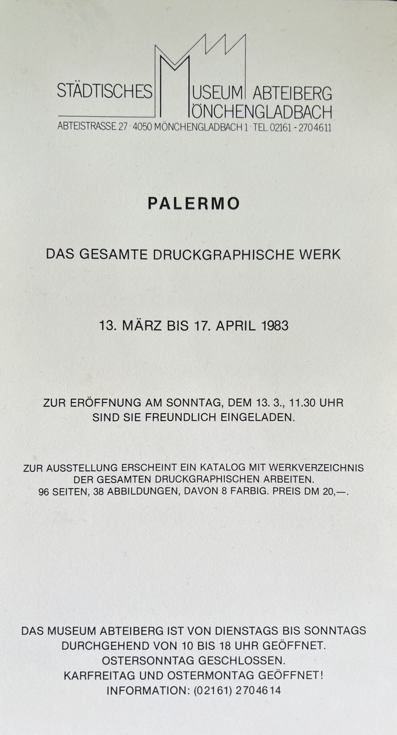 Monchengladbach: Stadtisches Museum Abteiberg Monchengladbach, 1983