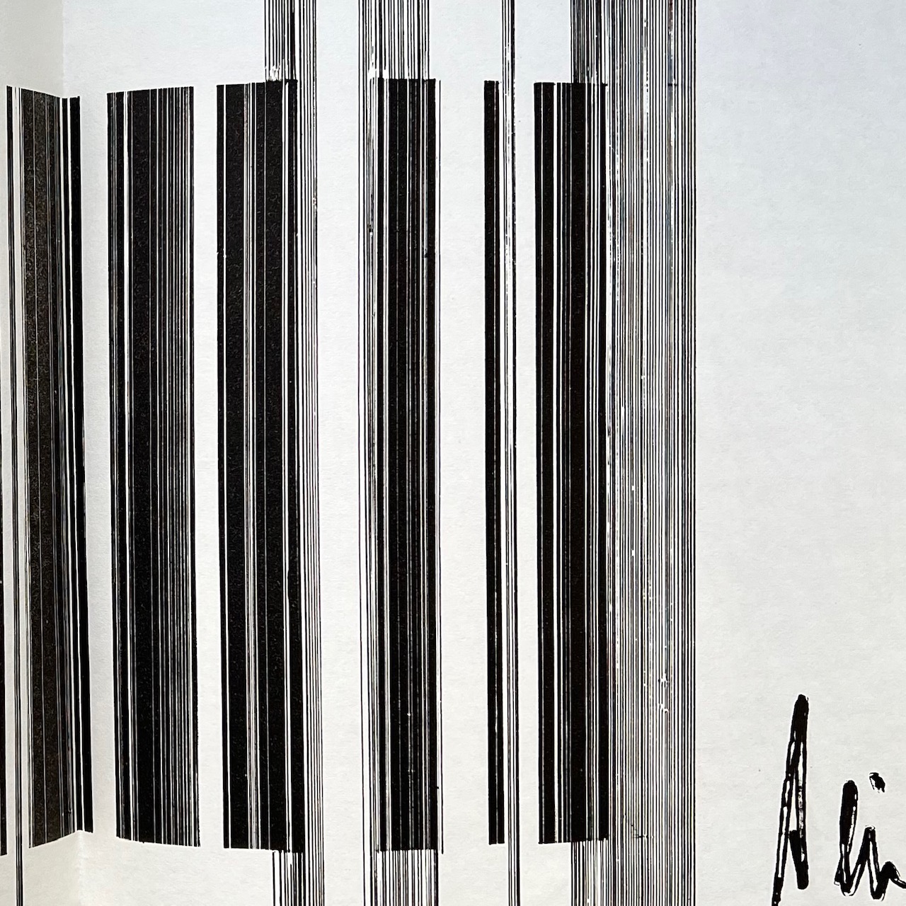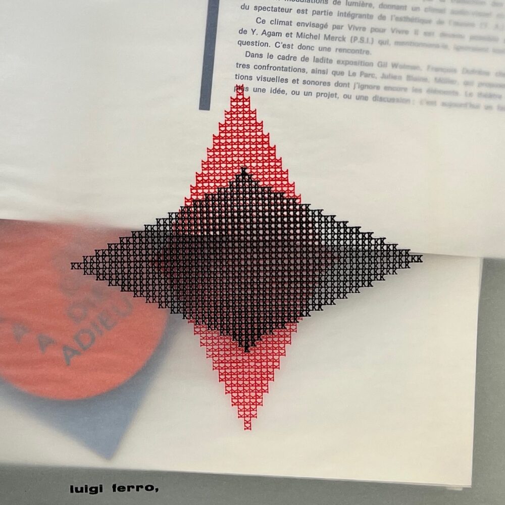 (f) Luigi Ferro’s a concrete poetry typewriter work printed black and red on translucent paper – 8pp.