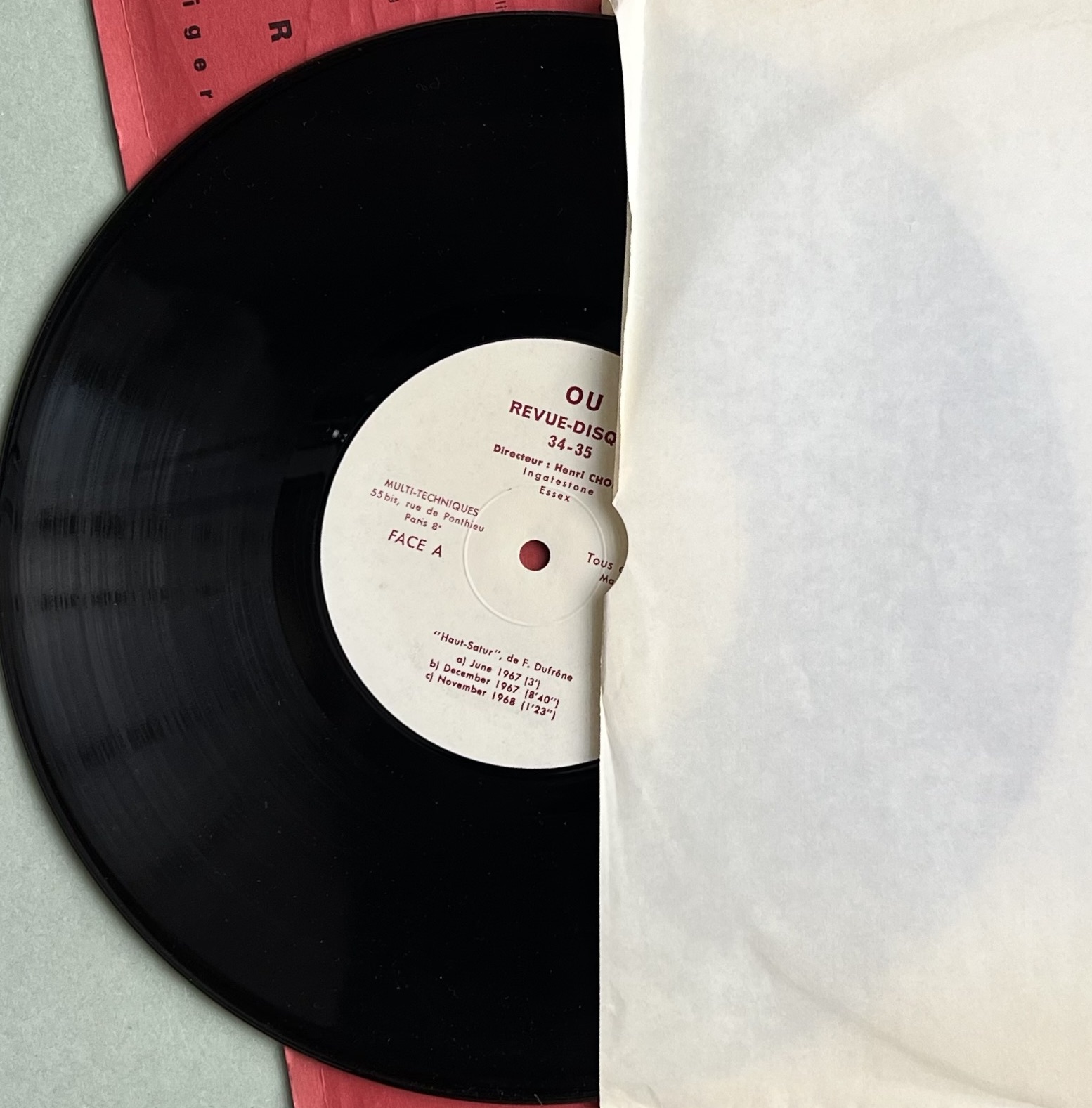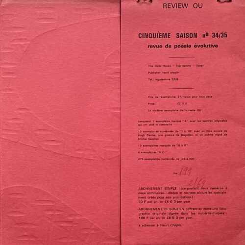26 x 26cm outer cover with embossing by Gisiger on red card. 10 inch record with paper artworks. A single number of Chopin’s long running assemblage and musical publication.