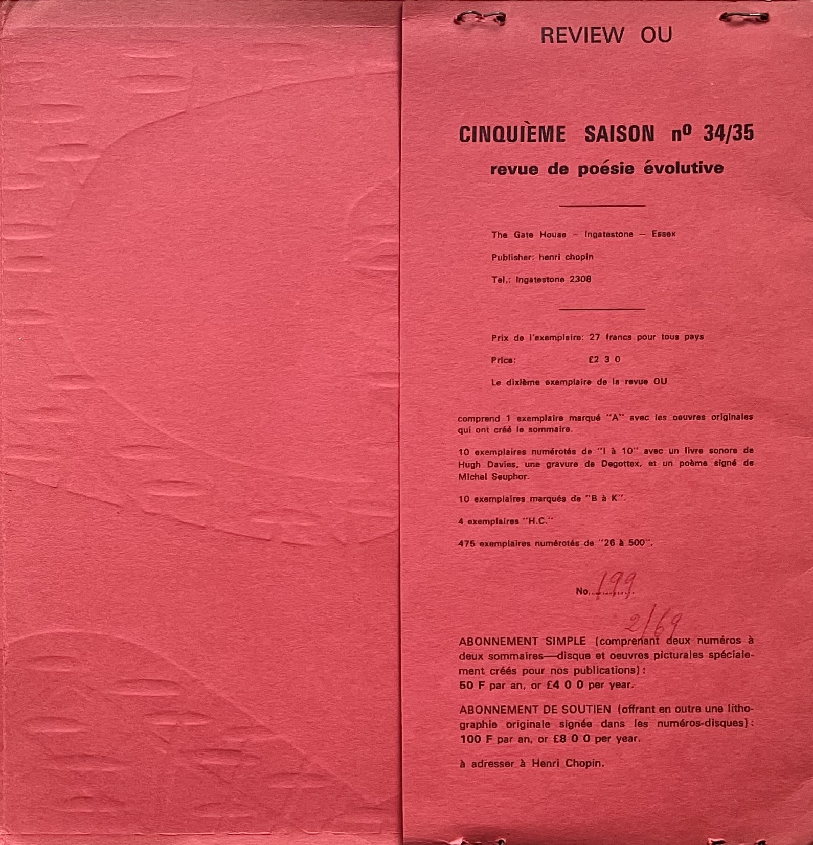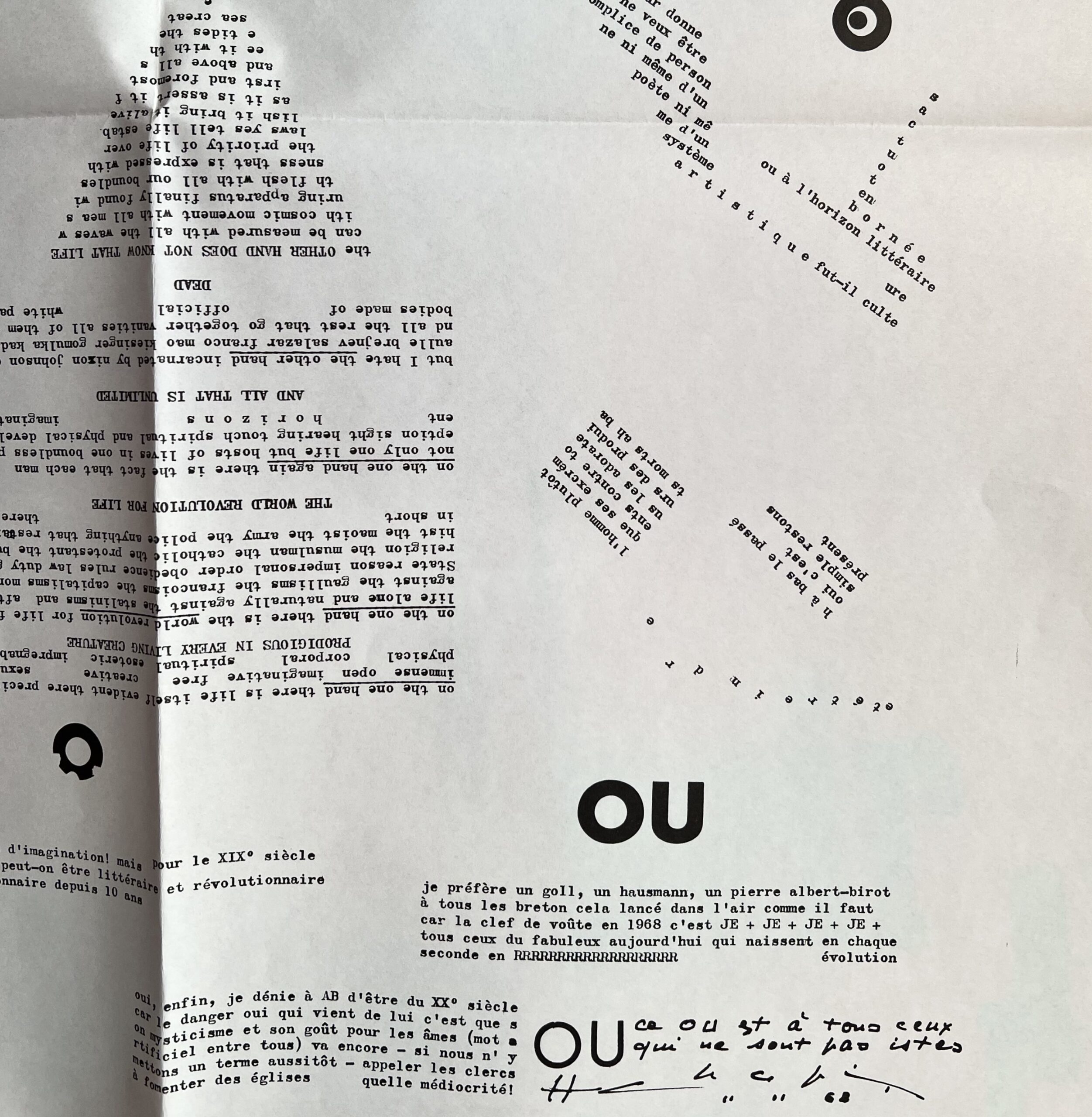 Paris: OU (Henri Chopin and Gianni Bertine), 1969