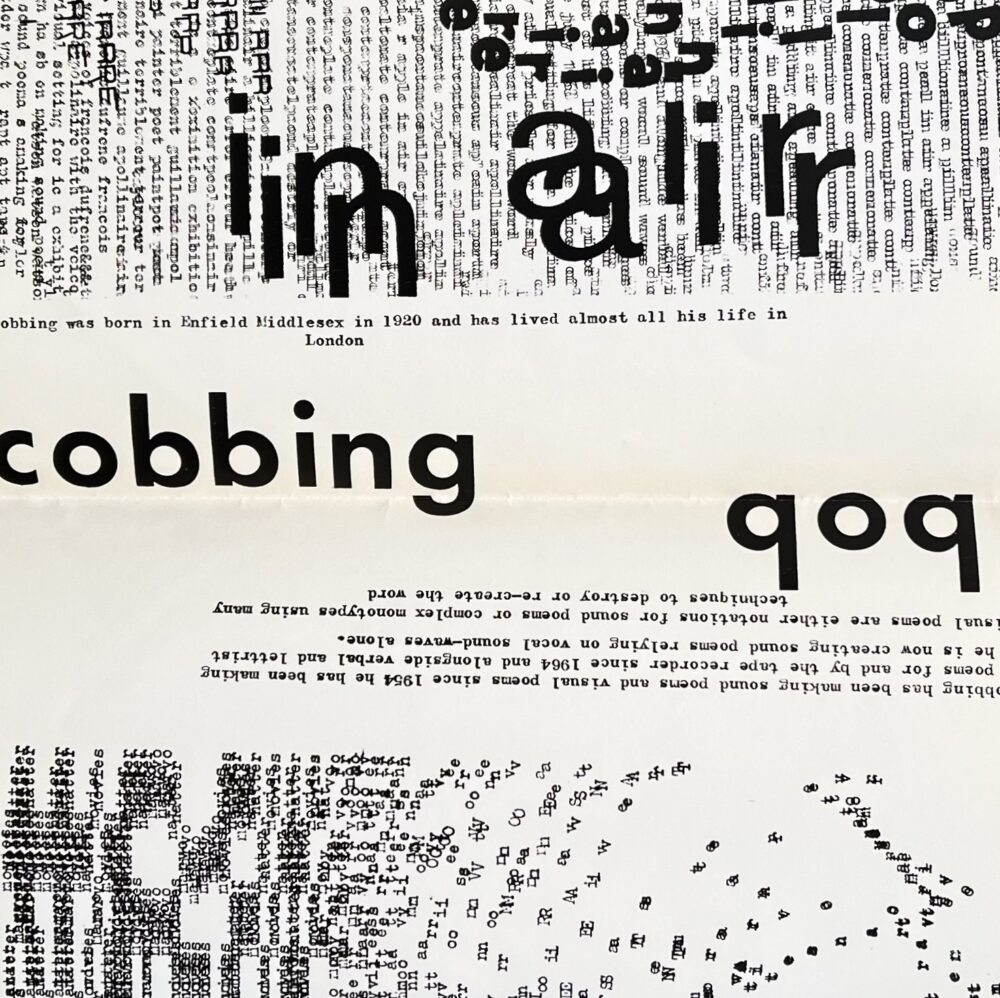 The record has Haut-Satur by Dufrene on one side and on the other two works by Bob Cobbings – Marvo Movie Natter and Spontaneous Appealinair Contemporate Apollinaire – as well as Henri Chopin’s Mes Bronches.