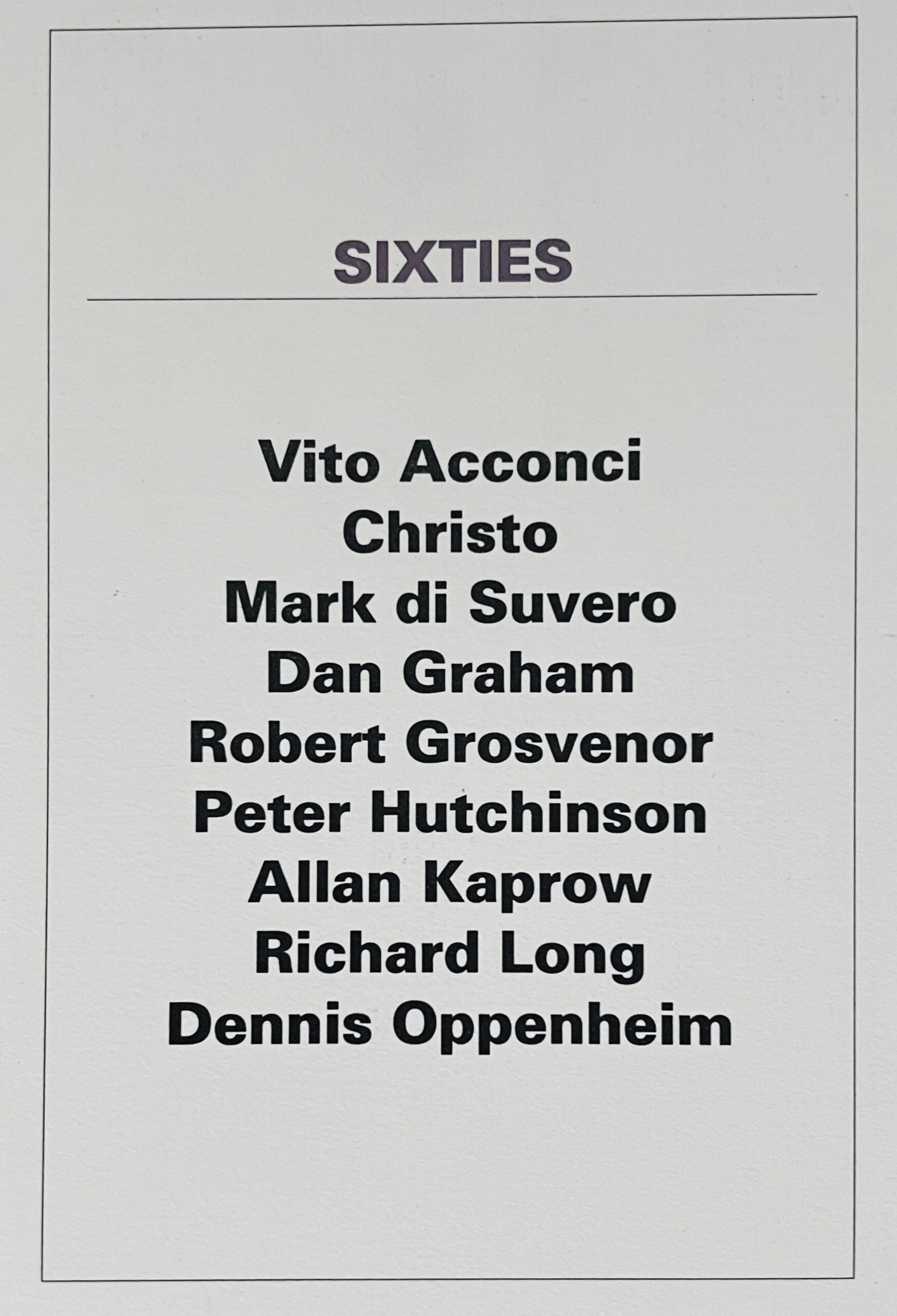 15 x 10,5cm, 2pp typographic announcement card for a group show of works from the 1960s by Vito Acconci, Christo, Mark di Suvero, Dan Graham, Robert Grosvenor, Peter Hutchinson, Allan Kaprow, Richard Long, and Dennis Oppenheim. Verso gallery details. VG+.