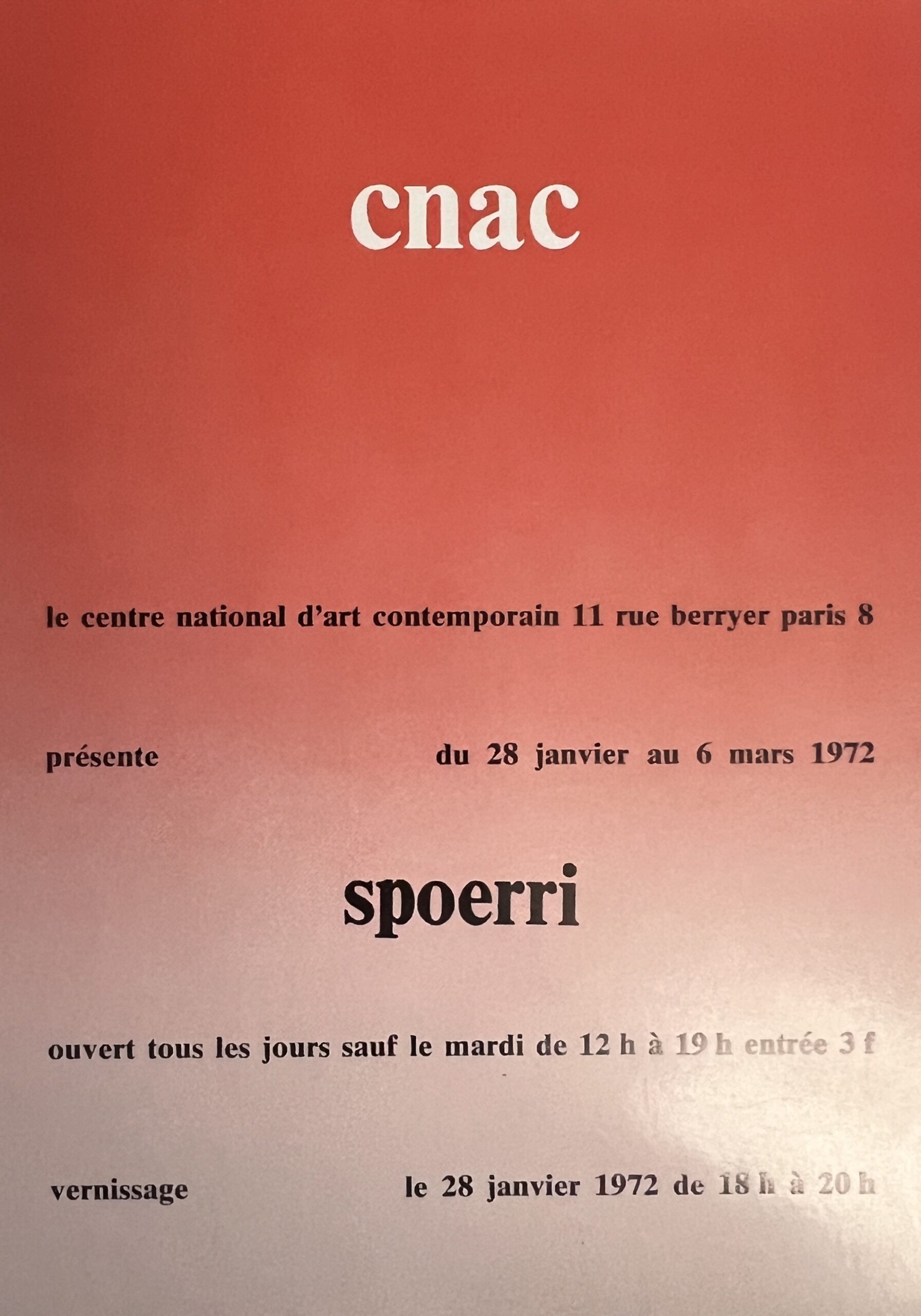 14.3 x 10cm, 1pp typographic design announcement card for a solo Daniel Spoerri show. VG+.