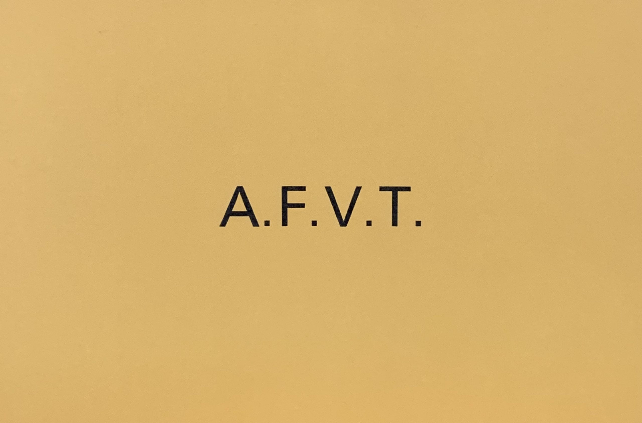 Dunsyre: Wild Hawthorn Press, 1973. 10.5 x 14.8cm, 2pp – with a typographic design on the front with the initials A.F.V.T.on a mustard coloured background. The initials stand for ARMOURED FIGHTING VEHICLE TEA. VG+.