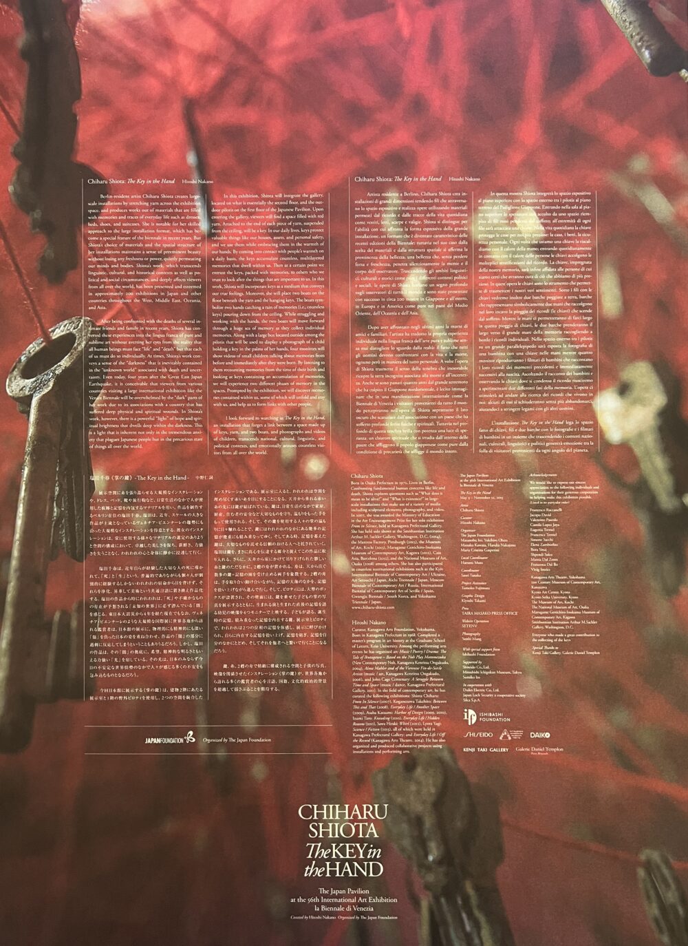 68 x 49.5cm, two-sided exhibition poster and catalogue for the important installation in the Japanese Pavilion at the 56th Venice Biennale. Texts on the artist in Japanese, English, amd Italian. VG+.