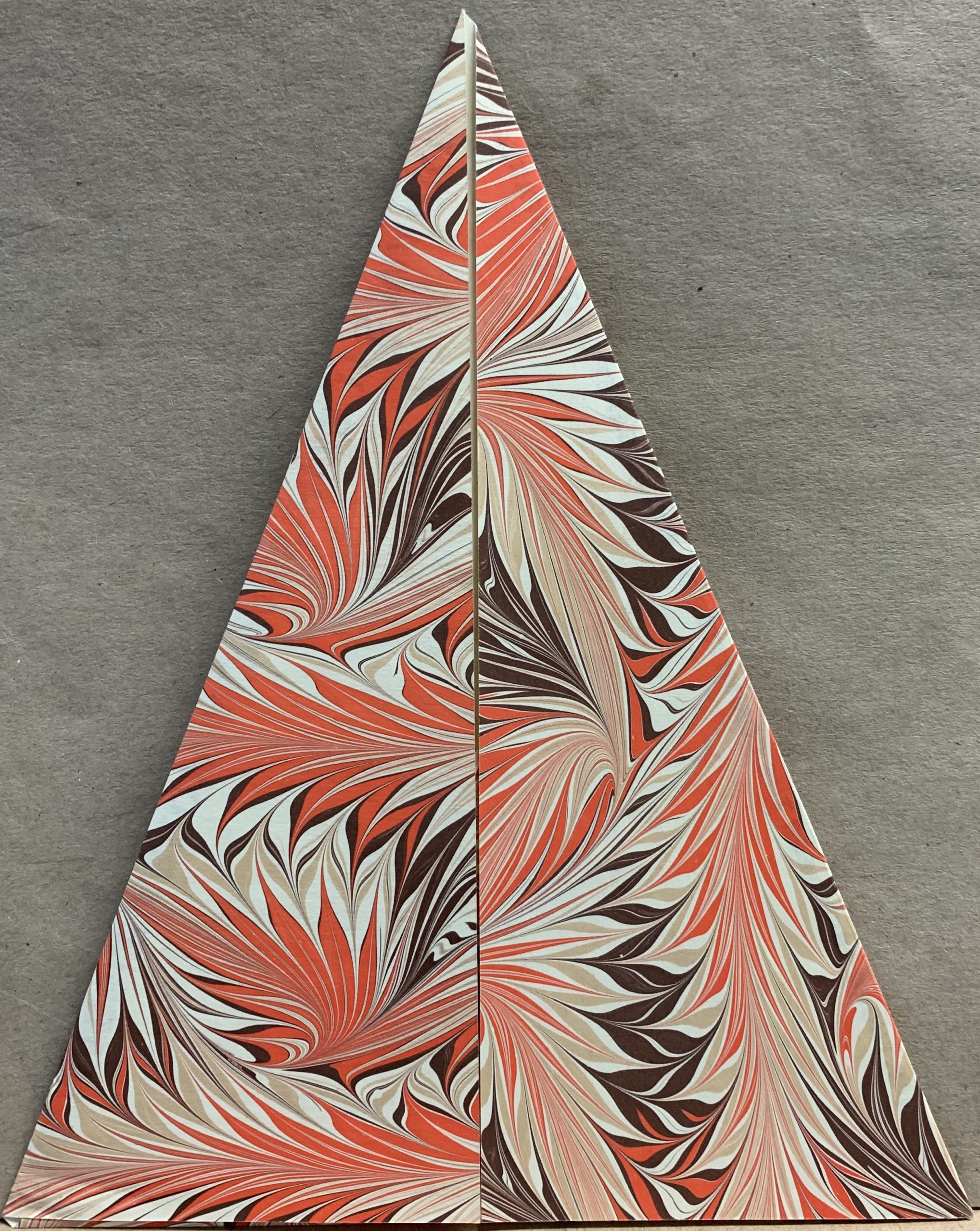 21 x 21cm (unfolded size), letterhead in the form of a two-sided folding paper which turns into a paper dart – with a marbled pattern on one side.