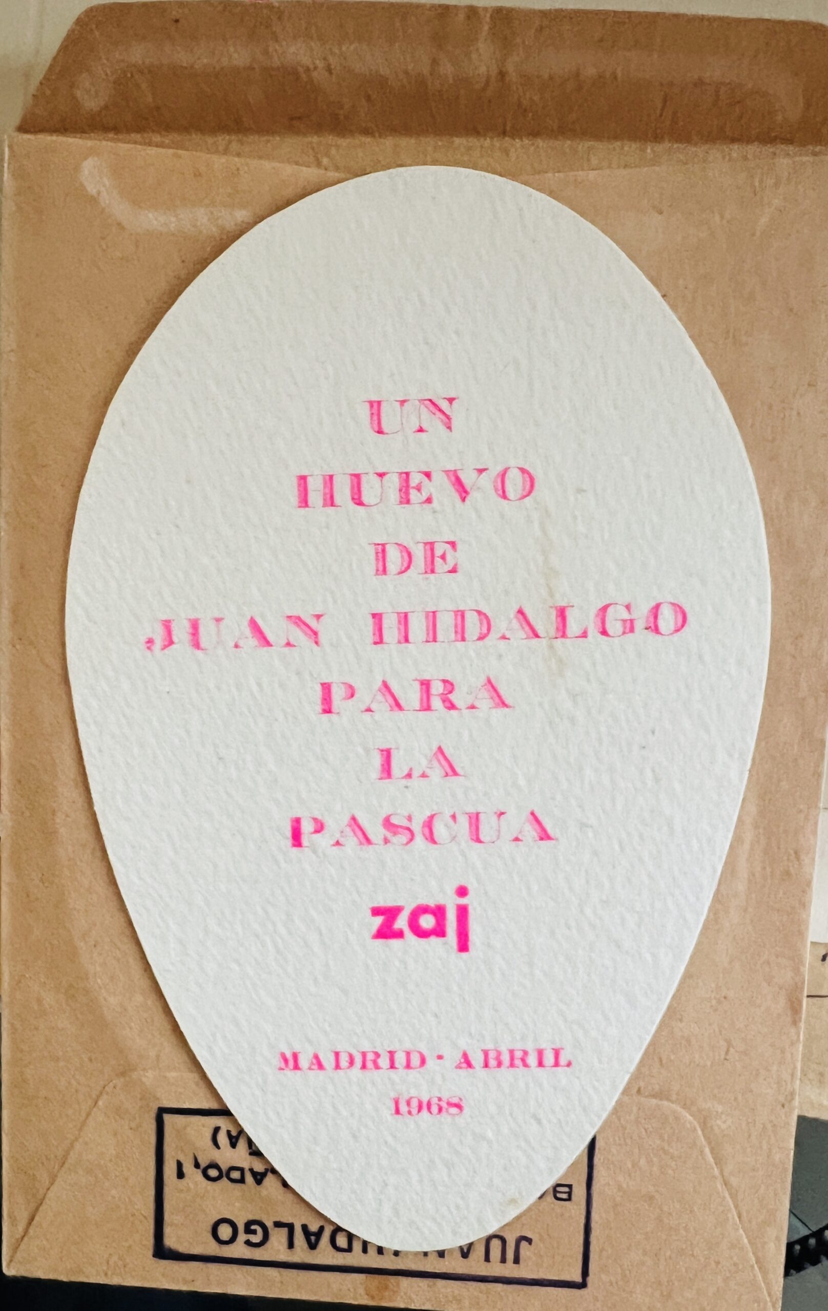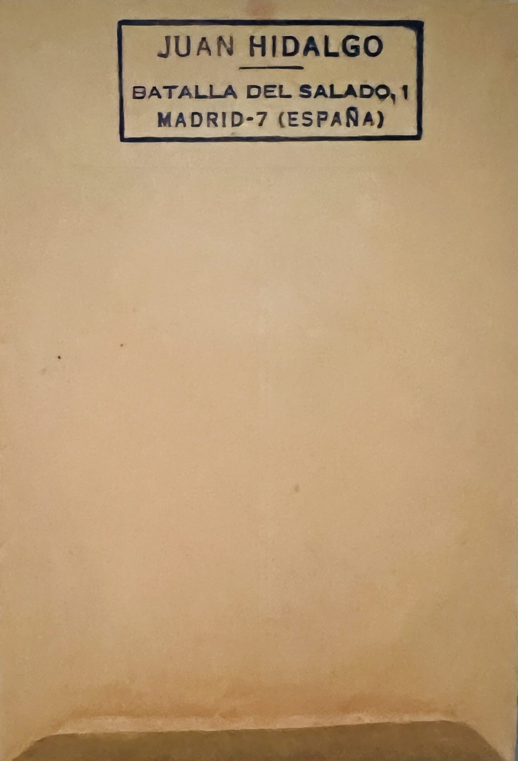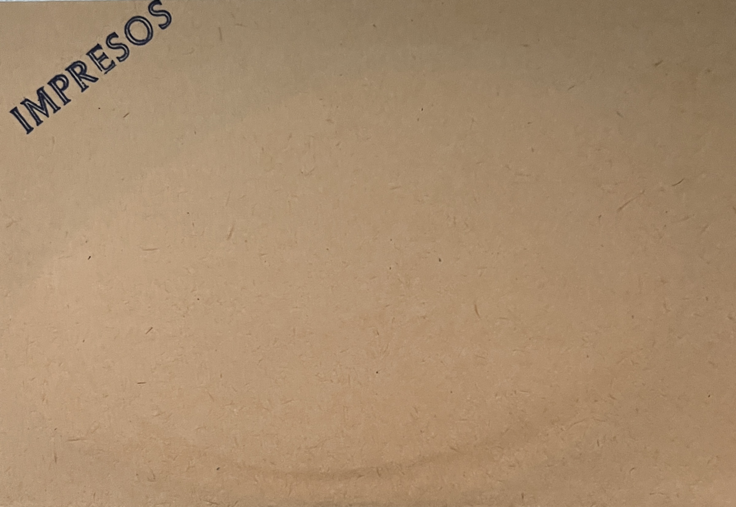Hand printed (rubber stamp) envelope with Hidalgo’s address on one side and ‘Impresos” on the other.