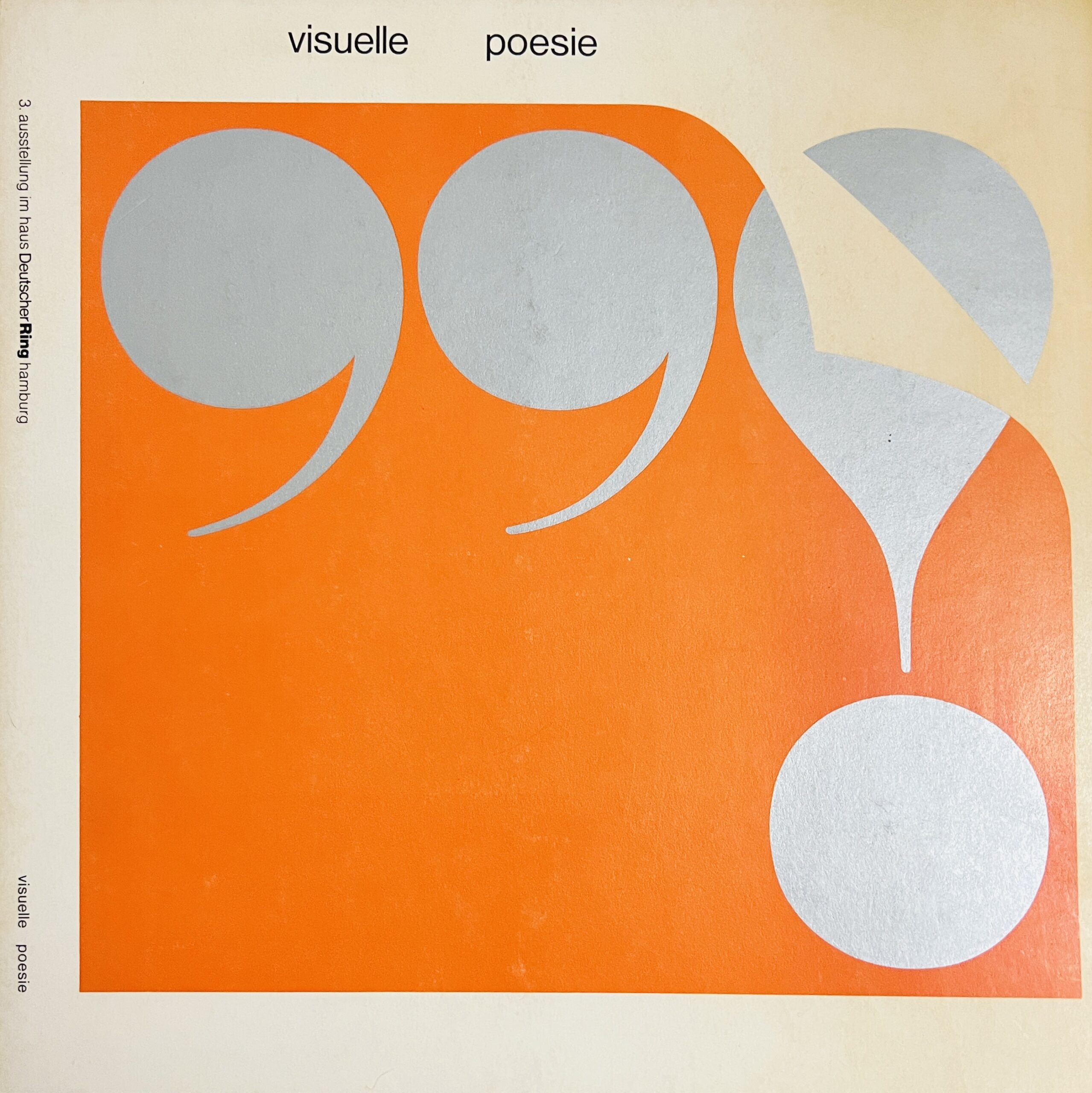 21 x 21cm, 18pp plus card covers. Exhibition catalogue for a significant exhibition of visual poetry which was curated and edited by Eugen Gomringer with reproductions of works by Eugen Gomringer, Claus Bremer, Ernst Jandl, Ferdinand Kriwet, Hansjorg Mayer, Franz Mon, Diter Rot, Ditier Roth, Gerhard Ruhm, Daniel Spoerri, Andre Thomkins, Timm Ulrichs, Oswald Wiener and others. Texts by Max Bense, F.T. Marinetti and Gomringer, VG+. Scarce.