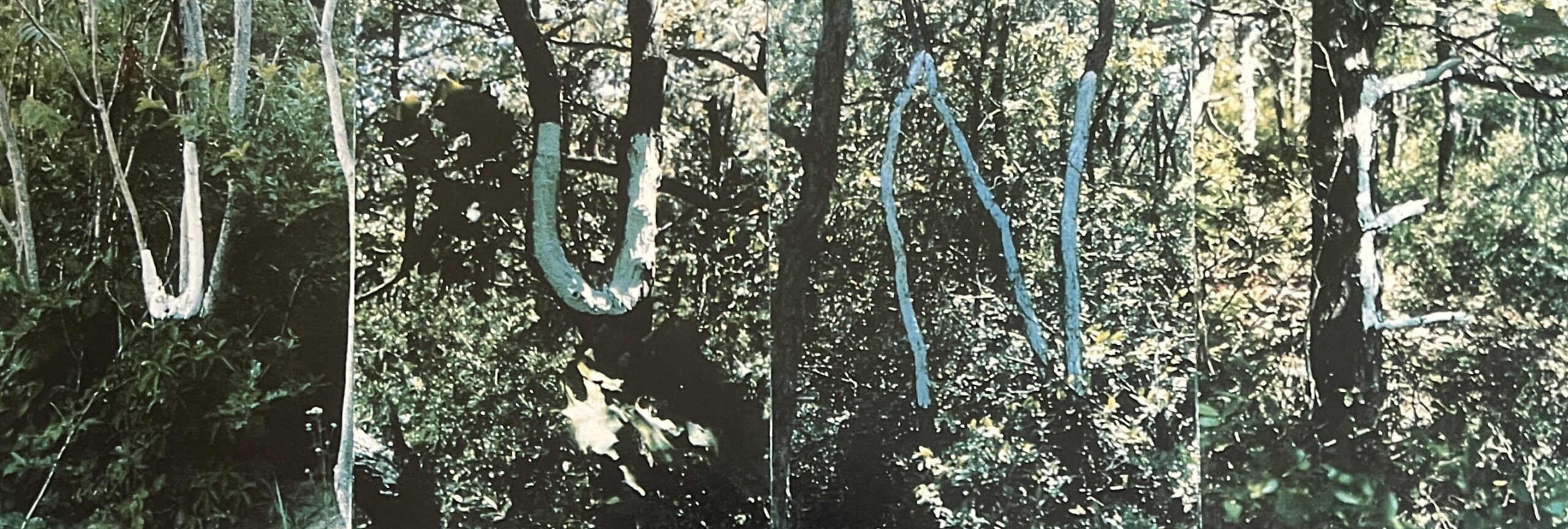9 x 22cm, 2pp announcement card with a reproduced photographic triptych on the front where the parts of trees reads “June” and verso gallery details. VG+.