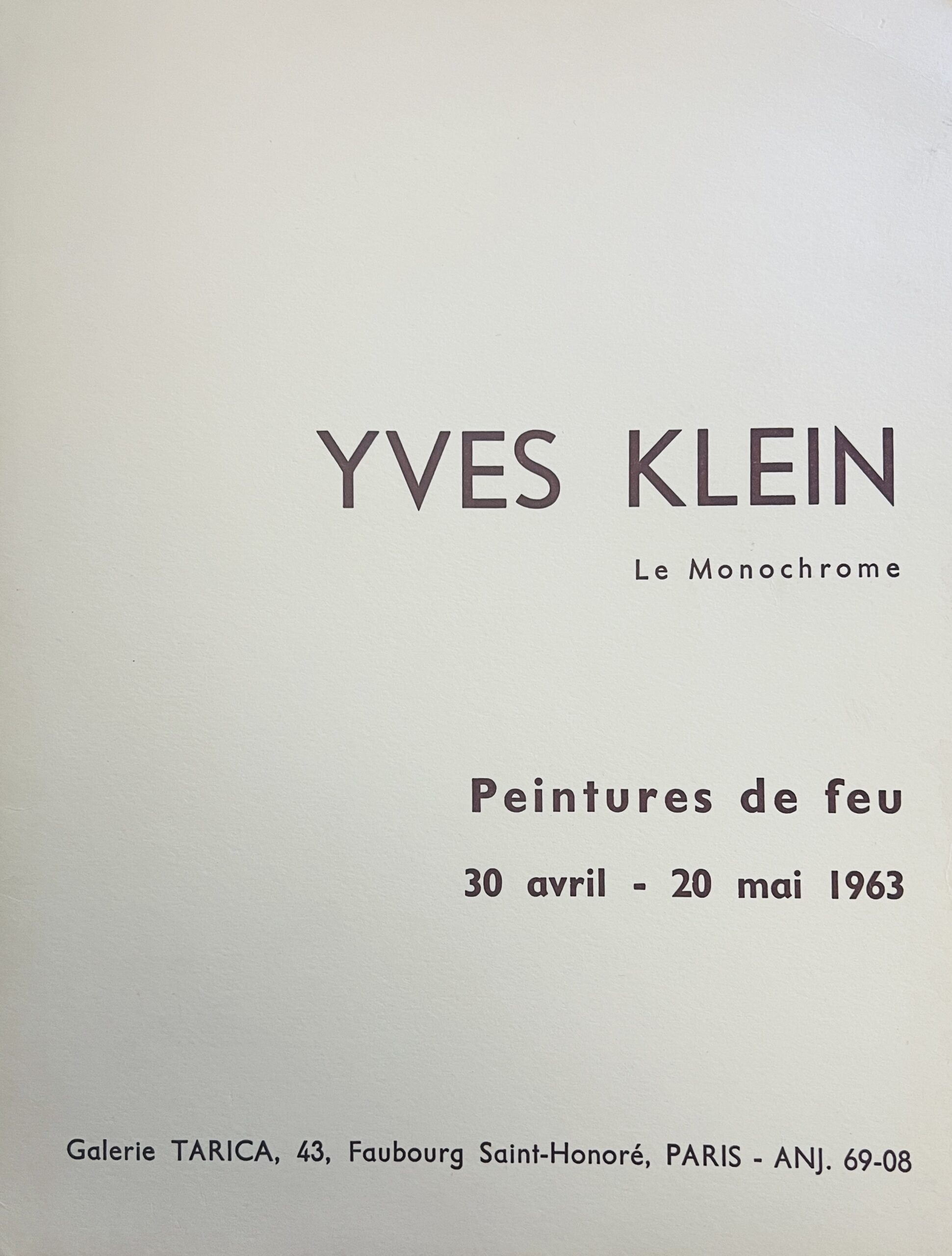 28 x 21.9cm, outer printed folded with 4pp printed insert with a b/w photographic portrait of the artist making a fire painting by Harry Shrunk, a poem by André Verdet and a short critical text by Pierre Restany.