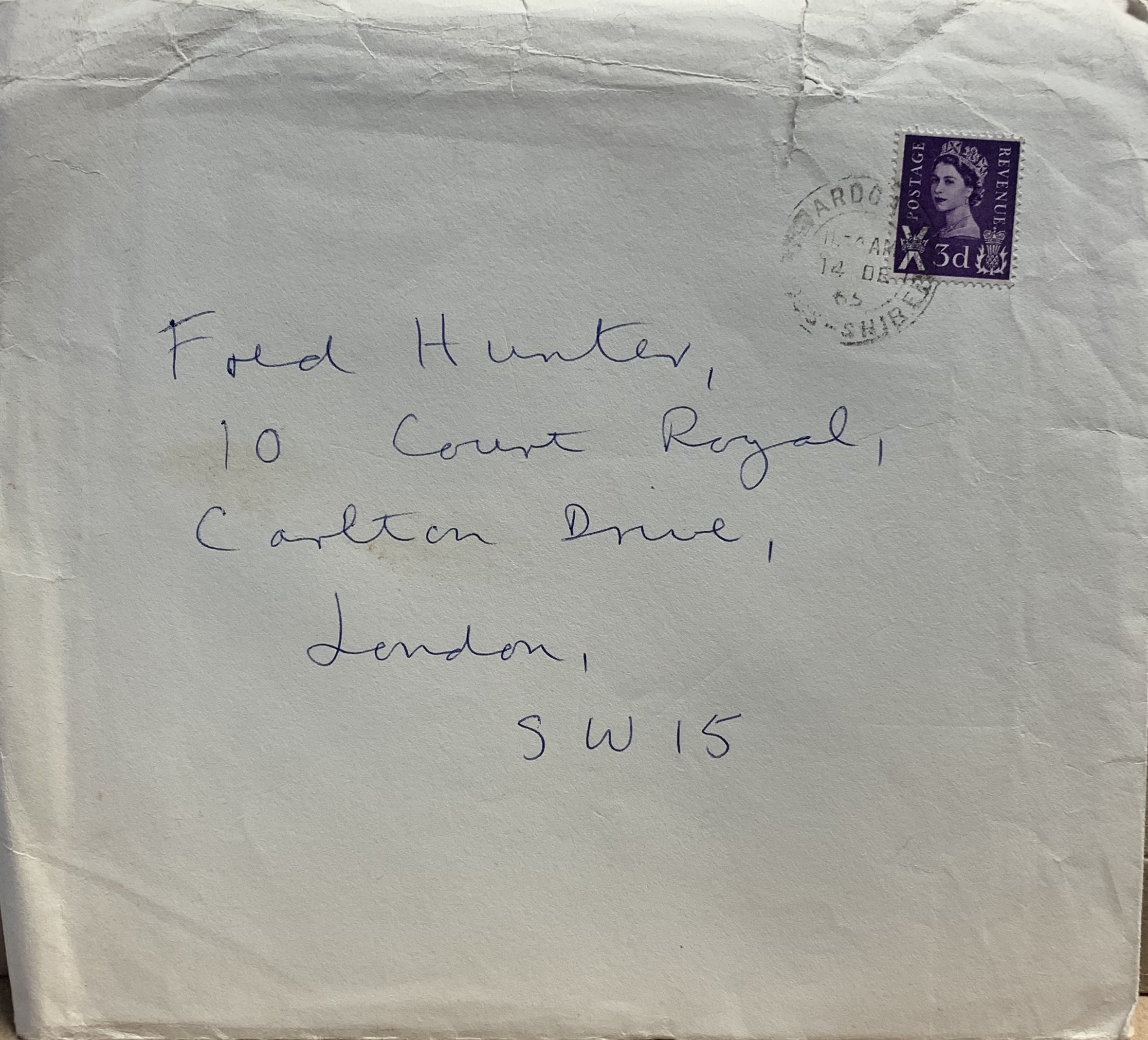 An extremely hard card to find – we have seen only 3 examples in 20 years and it took us that same amount of time to find one for this collection. One small tear to the card on the right from being poorly opened in the envelope, internally this is signed “Happy Christmas from Ian” and is with the original postal envelope hand addressed by Finlay to Fred Hunter.